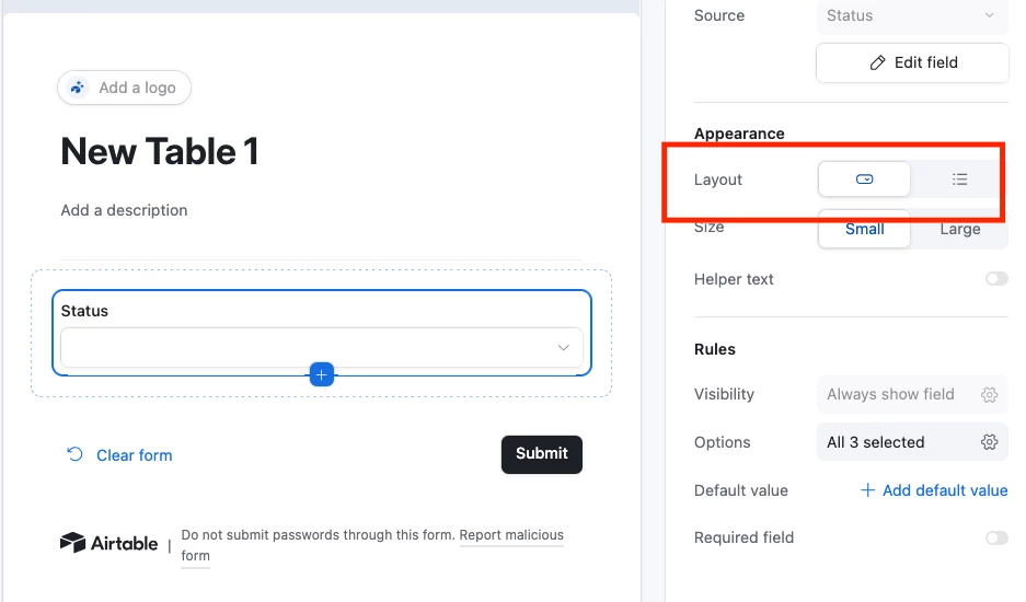 Bien que le champ soit en “Selection unique”, lors de la création d’un formulaire, la partie “Apparence”