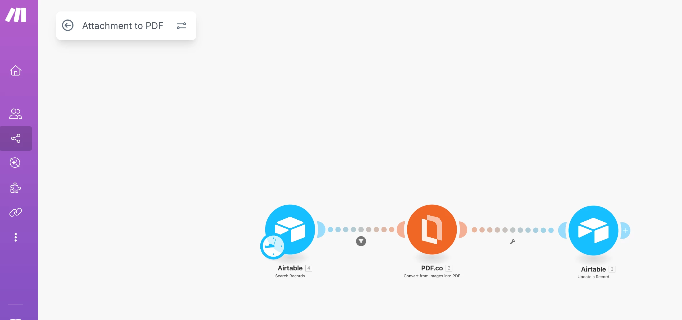 If helpful, what I had to build was a Make (or n8n automation) that would pass my image to a pdf.co module/node to get it converted into a pdf. (I know, crazy, right?).