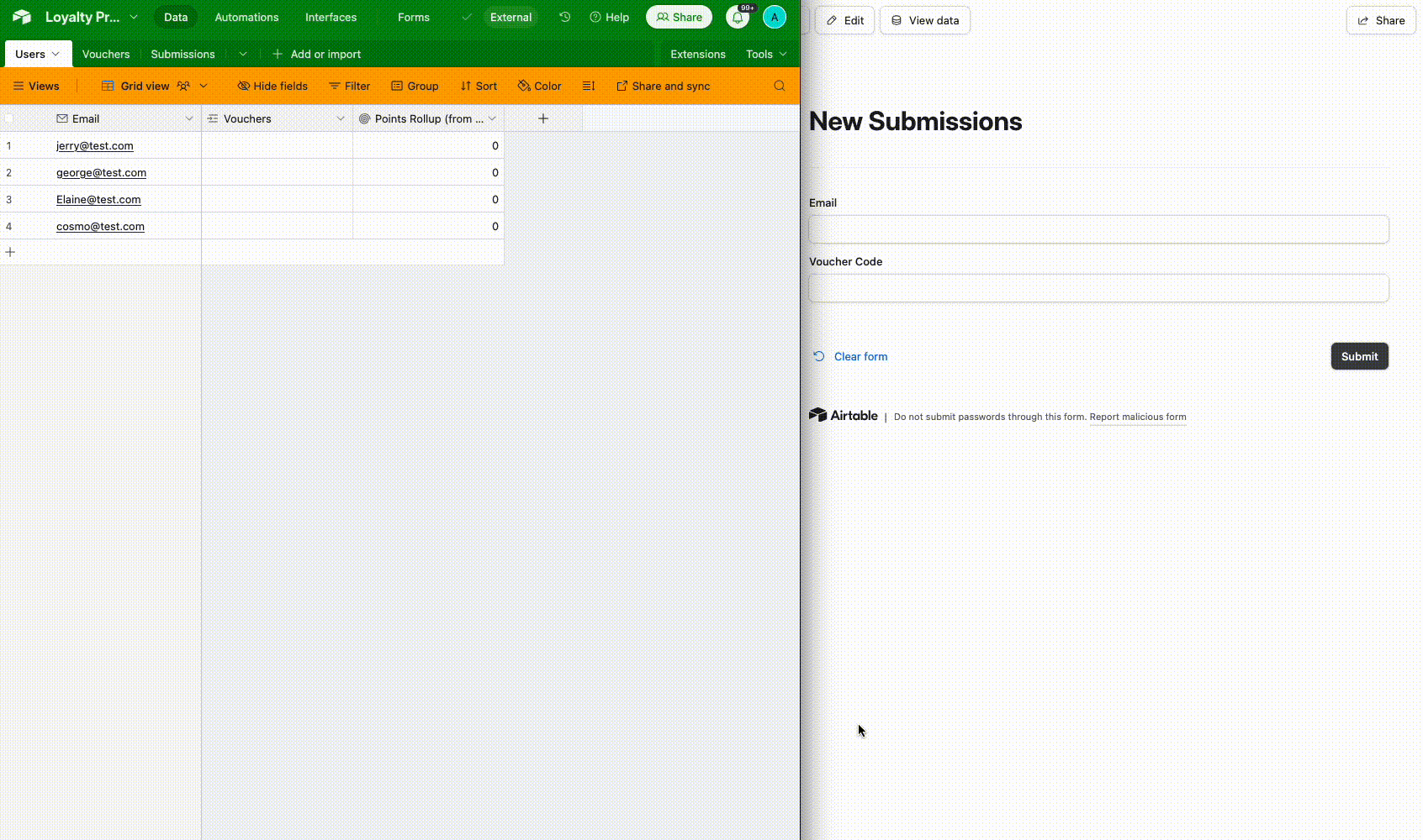 I’m building a simple, secure voucher-based loyalty points tracking system using Airtable. It will collect submissions from a Tally form where users enter their details and a unique voucher code. In Airtable, I want to have two tables: one for all voucher claims submitted by users, and another for pre-issued voucher codes that hold the actual point values. When a new claim is submitted, Airtable should automatically check if the voucher code exists and hasn’t been used before. If valid, it should award the correct number of points from the voucher code and link the claim to that voucher to prevent reuse. If the code is invalid (not found) or already used, the system should mark it clearly as invalid and award 0 points. I want to see which codes are used, track user submissions, and be able to calculate each user’s total points. The whole system should be ready to grow later — like adding referral bonuses or leaderboards — but for now, it just needs to cleanly verify codes, stop duplicates, and assign correct points.