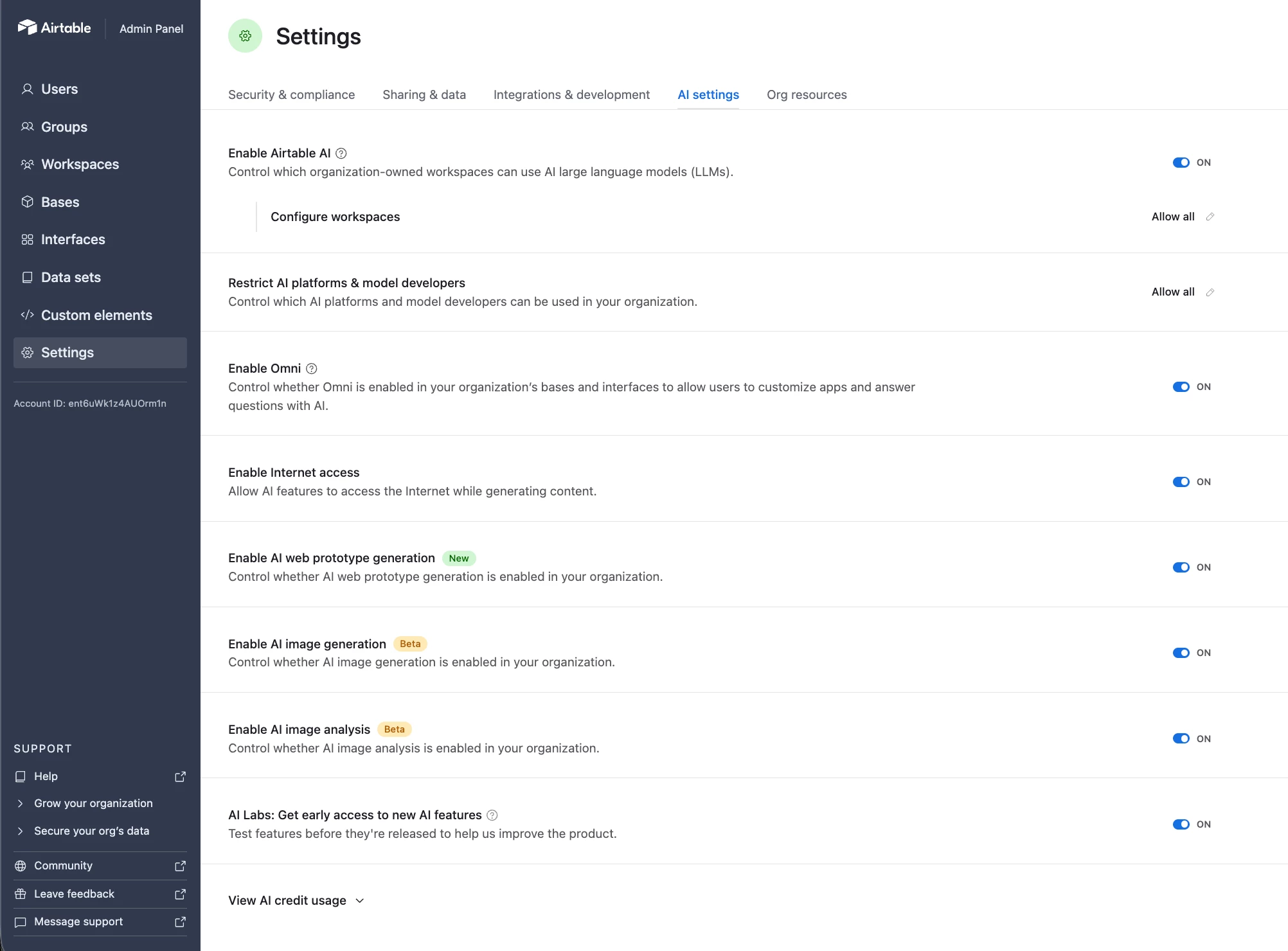Image analysis & generation toggles: these should appear under your AI Settings once Labs is on. If you don't see them at all, reach out to support and they can make sure everything's configured on your account.