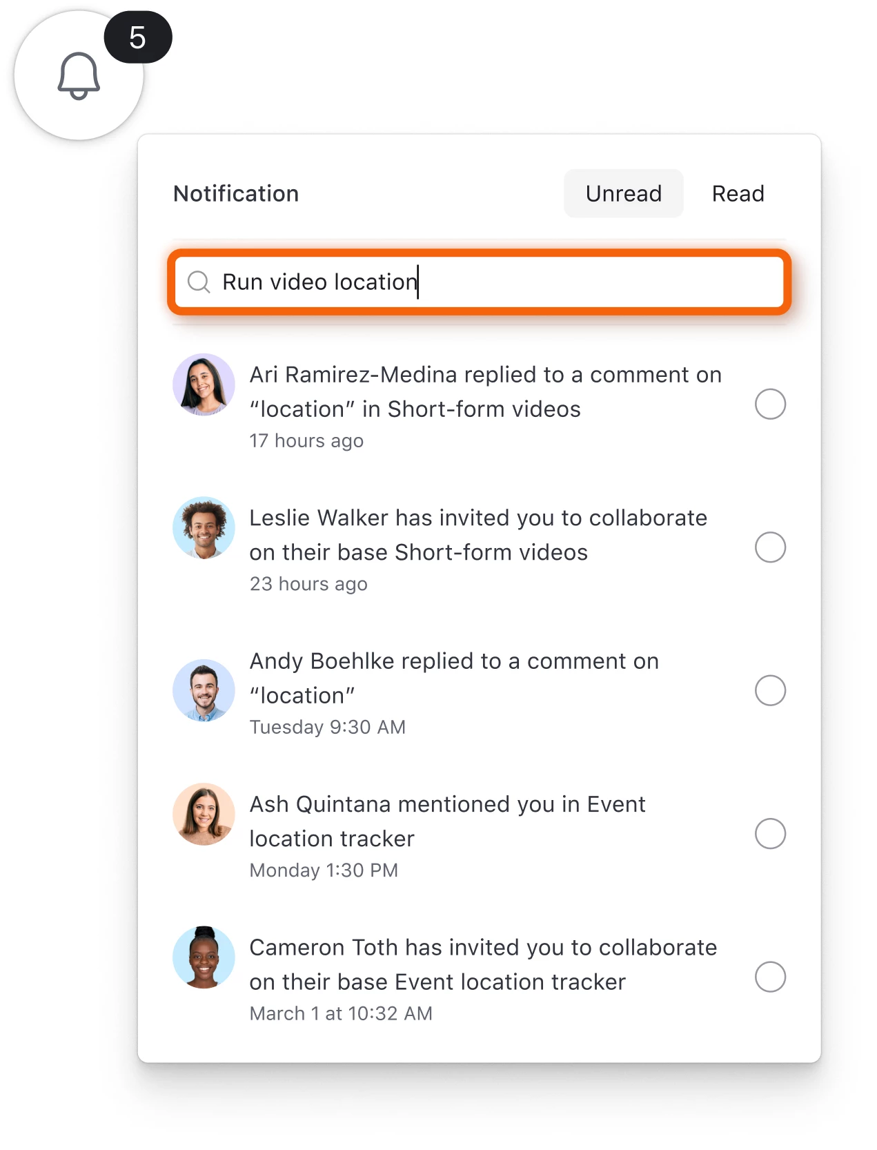 If you're someone whose notification bell permanently reads "99+", help has arrived. You can now search by the person who tagged you, the base name, or even the primary field value of the record. No more scrolling through hundreds of notifications trying to find the one you're looking for.