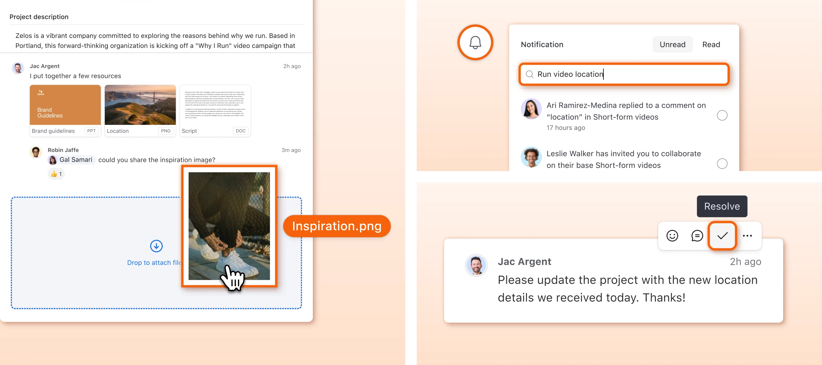 - Resolved comments can be filtered in the activity feed so you can quickly see what's been handled vs. what still needs attention