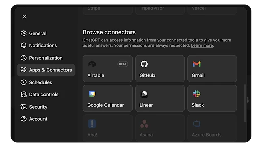 - Make quick updates to Airtable without leaving the chat: Keep your bases current with the changes that matter, right from ChatGPT.