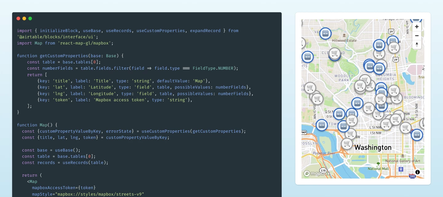 Just like we've seen with our recent AI-Generated Interface Elements, our builder community constantly amazes us by pushing the boundaries of what's possible with Airtable. While our AI tools can generate interfaces from simple prompts, the Interface Extensions SDK gives technical builders the ultimate flexibility to create precisely what they envision through code.