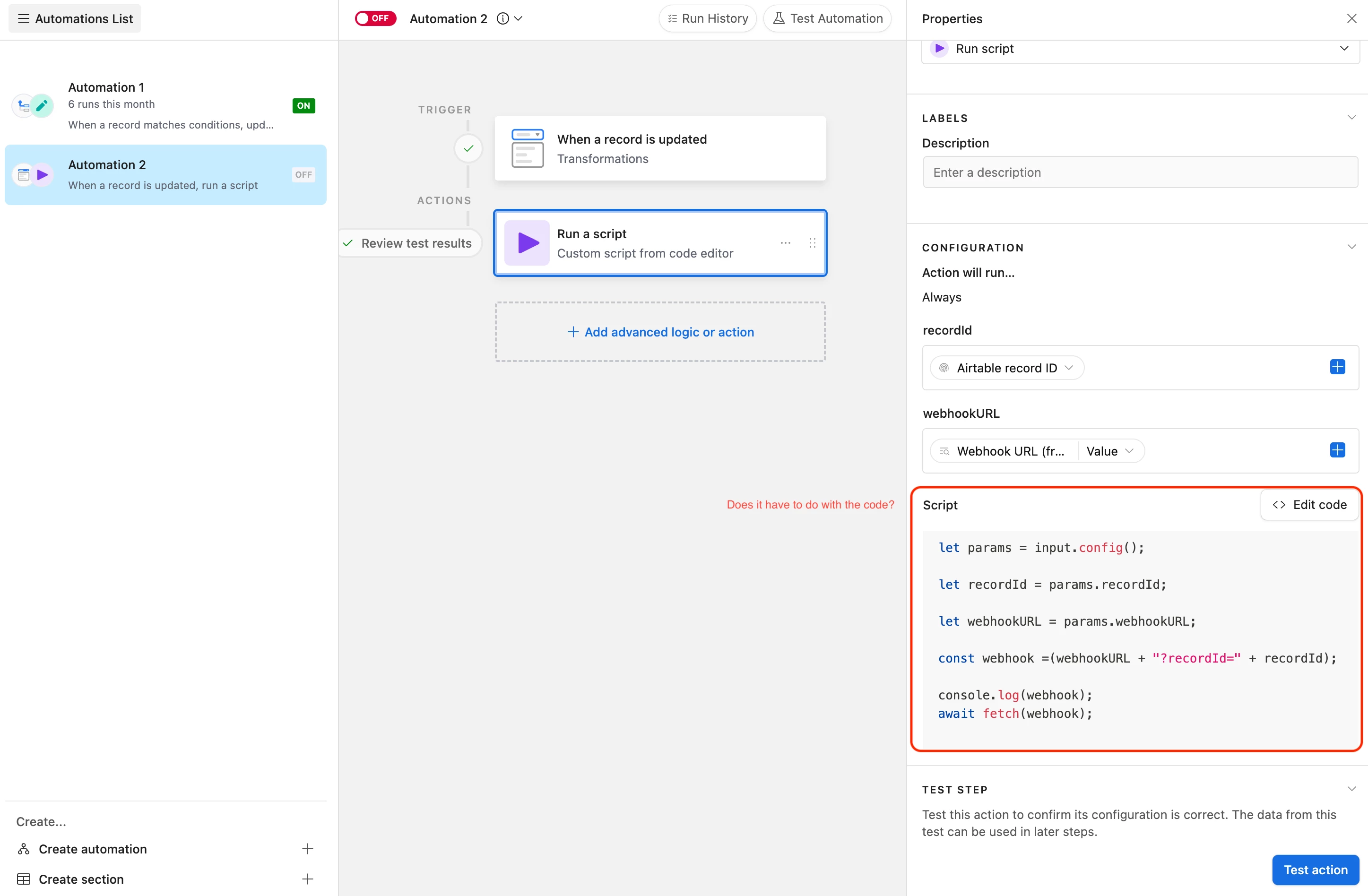 I have checked the names and IDs and I don’t know what I am missing. My administrator did the same operation and it showed the “Use Column ID: false”, but we didn’t have any problems or errors until now. I have re-written all the code, redone the tables and the whole process. Have updated all my permissions and the token on Airtable. I have 1 test record.