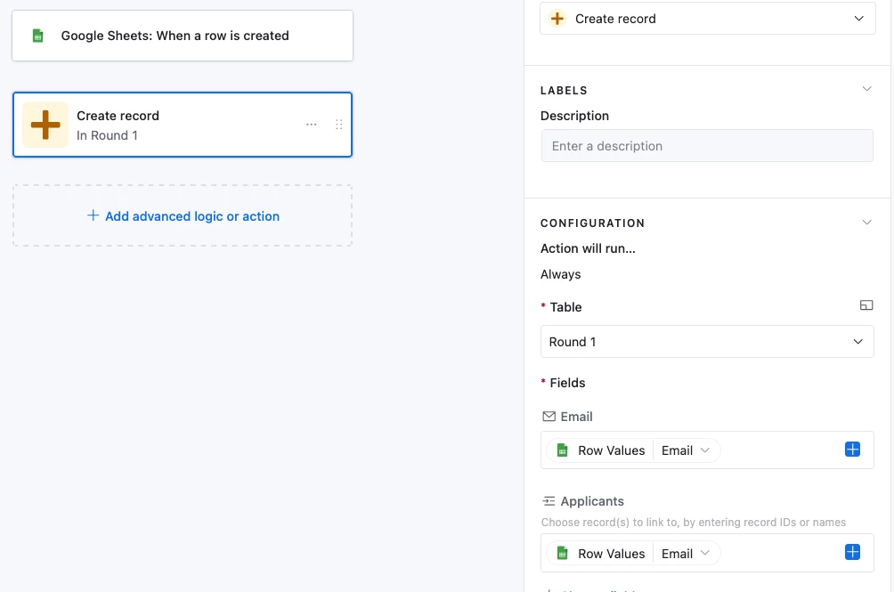 I have a table which is sort of like a job application portal for our company. We have a google form which is filled along with roles and role specific questions which then we bring into airtable for screening.