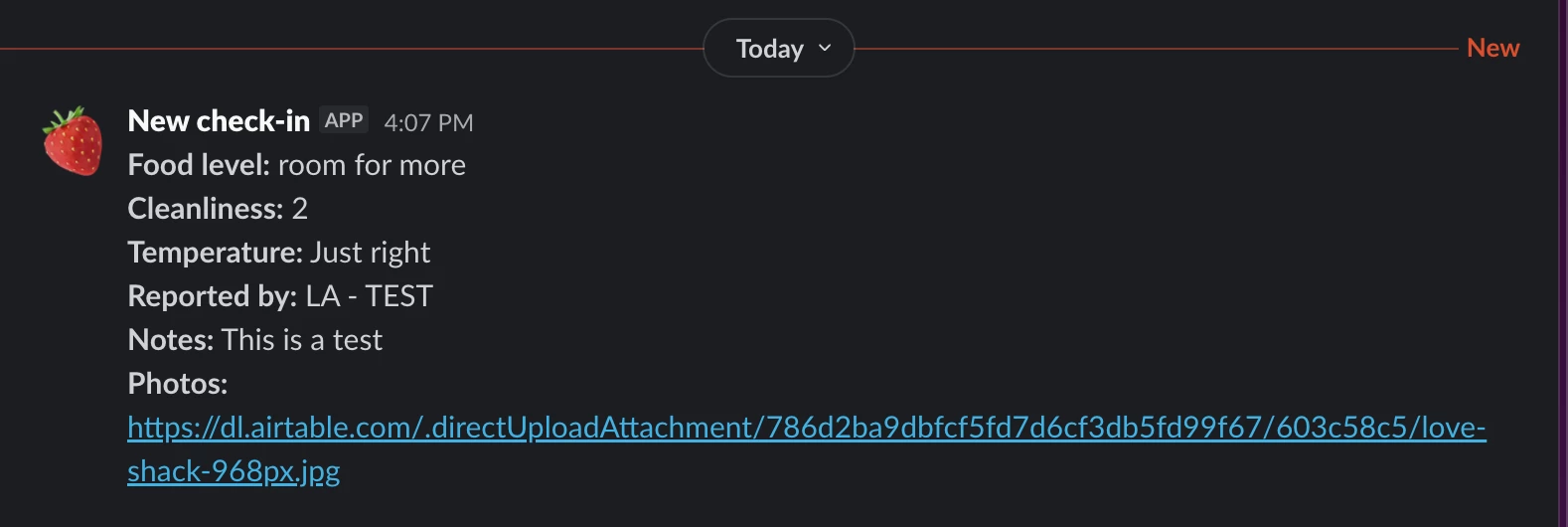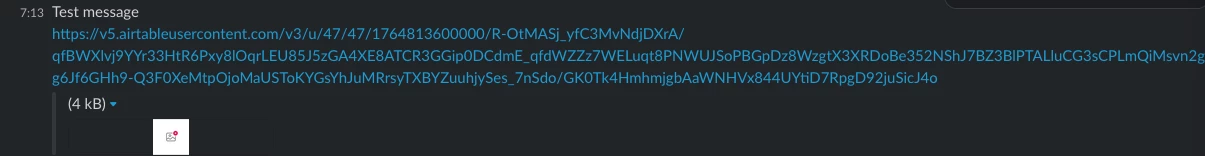I have a base setup for a check in system. When a user checks in through the airtable form that triggers a notification to slack. Within the form users can upload an image file which I am able to see on airtable.