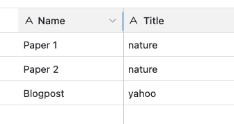 Example Title: Paper 1 Source: nature Title: Paper 2 Source: nature Title: Blogpost Source: yahoo