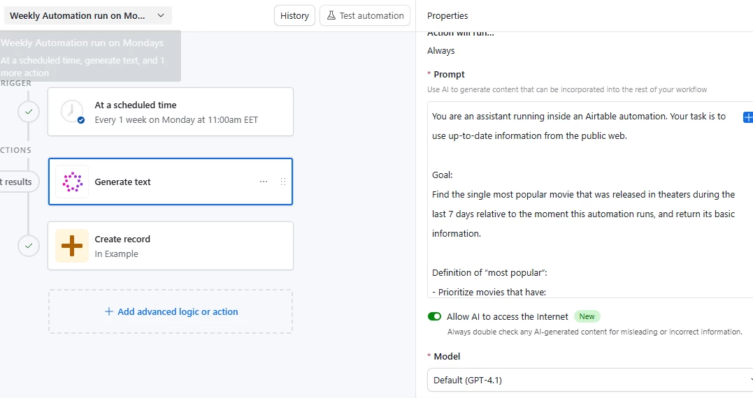 I’m looking to have a column (field) of field agents run/process once a week on a Monday morning. FYI these agents a prompted to go out to the internet and retrieve x information. There are no automation options specifically to do this - am I missing something or how else can this be achieved?