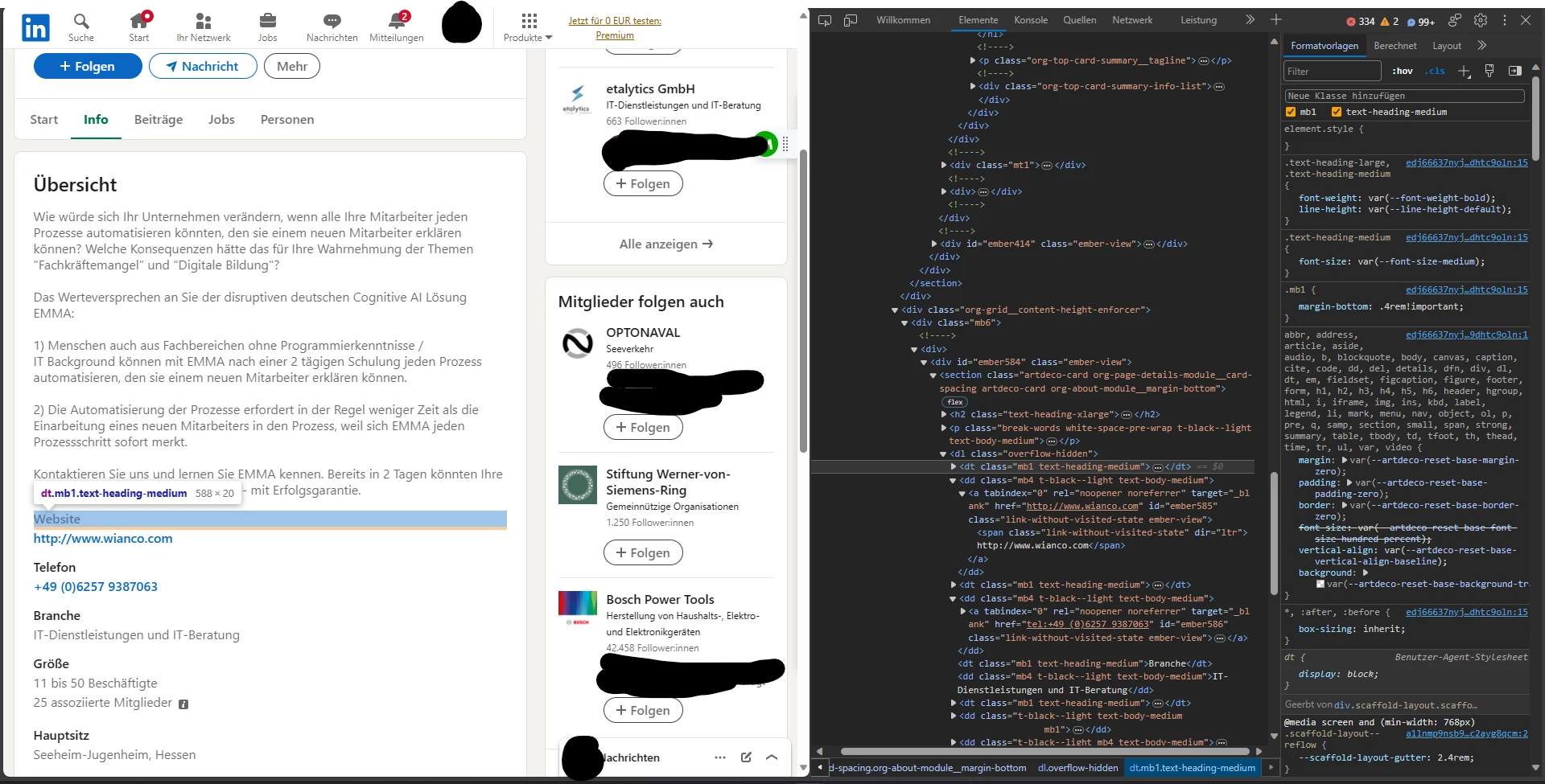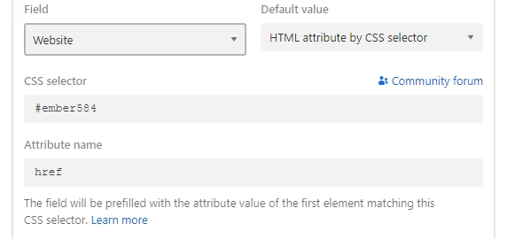 i try to use web clipper for getting data from linked in automatically in my airtable. im new to airtable and also to HTML. so i tried to set up the webclipper by selecting the HTLM atributes with CSS search. But unfortunatly my set up is not correct yet. can you help me and answer if i picked the right html attribute or notation