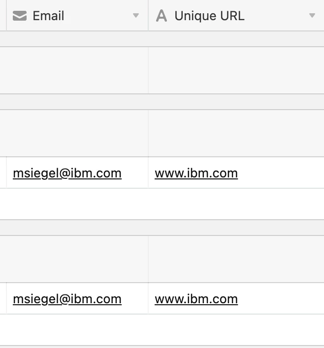 I have the email column and the unique url on the left hand side but when I go to test it, it gives me an error/shows up empty with the fields, saying I do not have an email and it doesn't show the URL I have put in the grid. Screenshots attached.