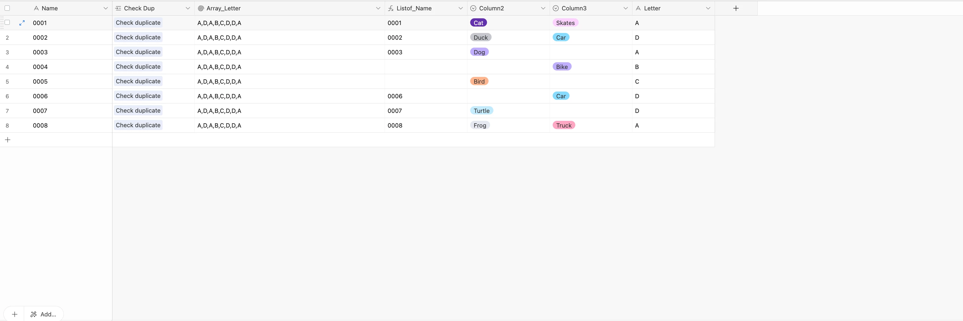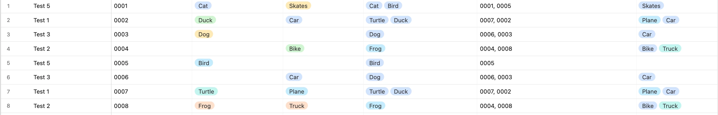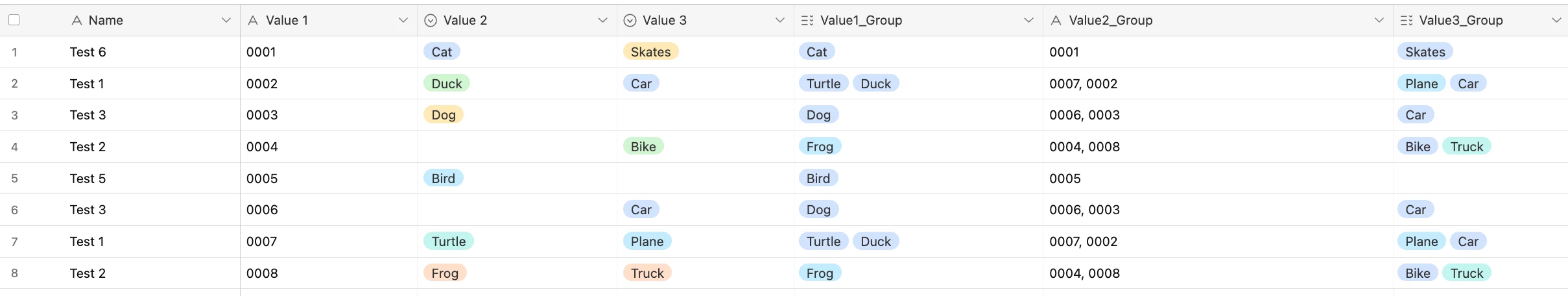 So in the attached example if I change record 1 (Test 6) to (Test 5) the automation will update record 1 to add the values from records 5 ...