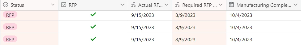 As you can see in the screenshot, 9/15 Actual RFP Date is less than 8 weeks from Manufacturing Complete date, so I want it to automatically change that 10/4 date to be 11/10.