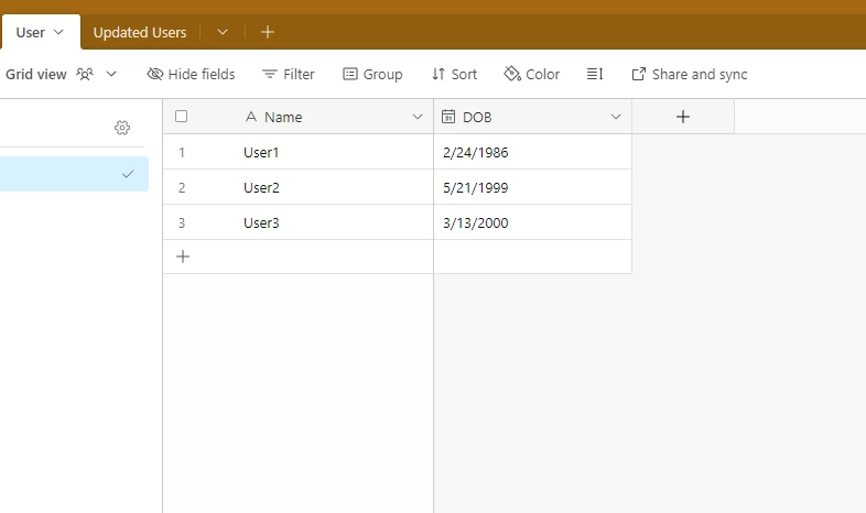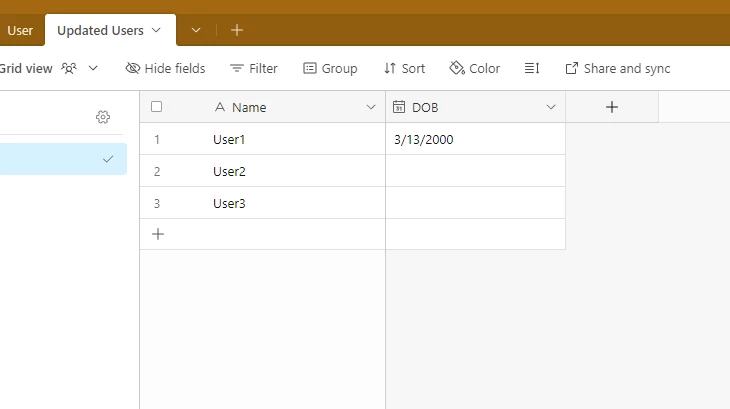 How do I make it so that if a user puts in their date of birth it will change onto the other table on the line specific to where their name is?