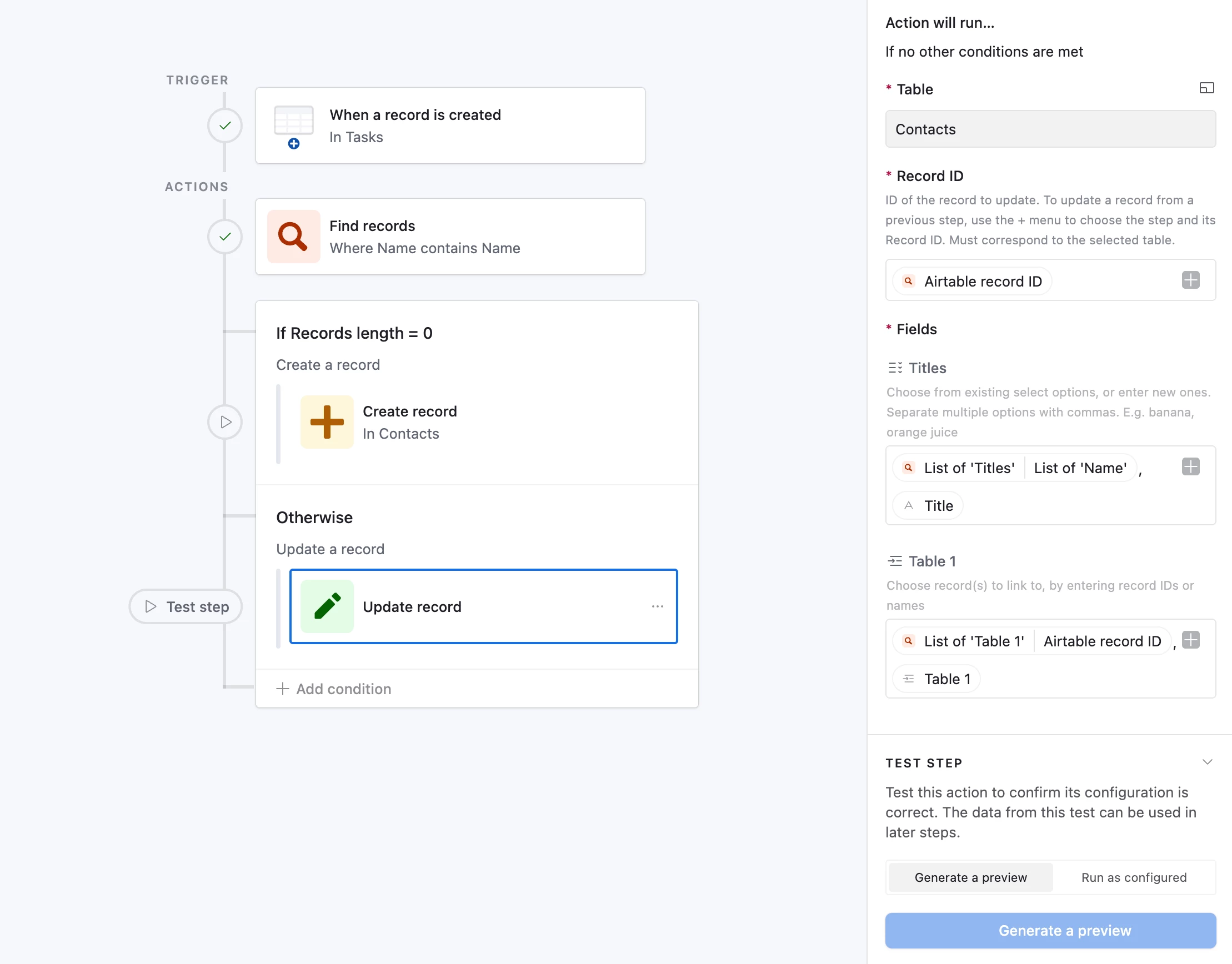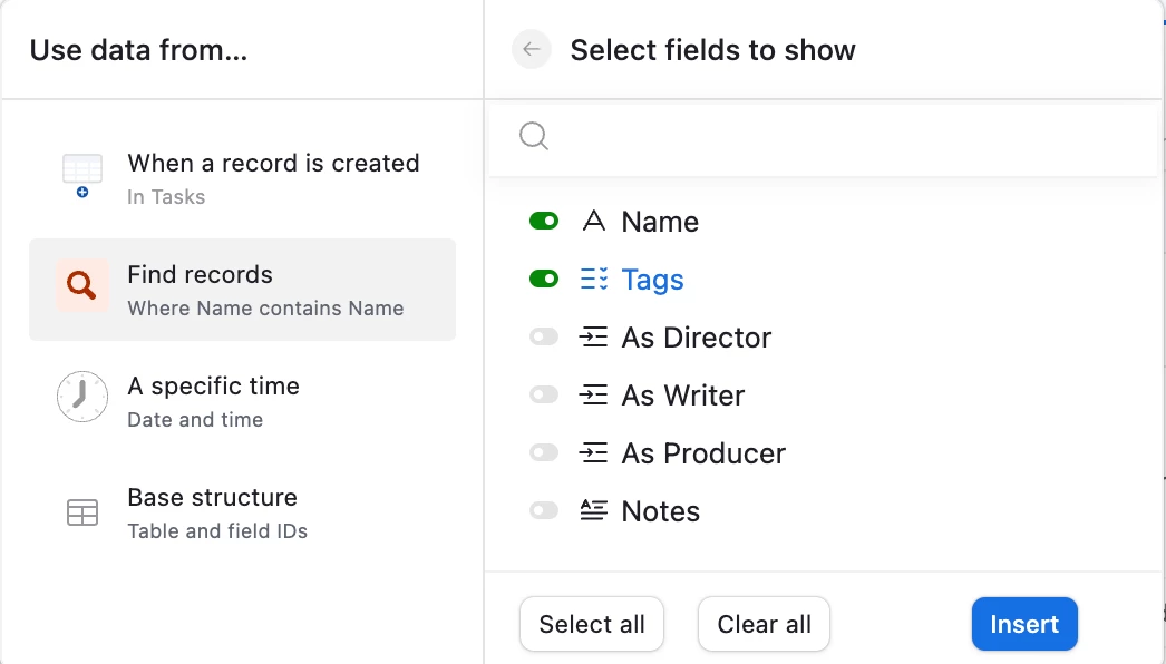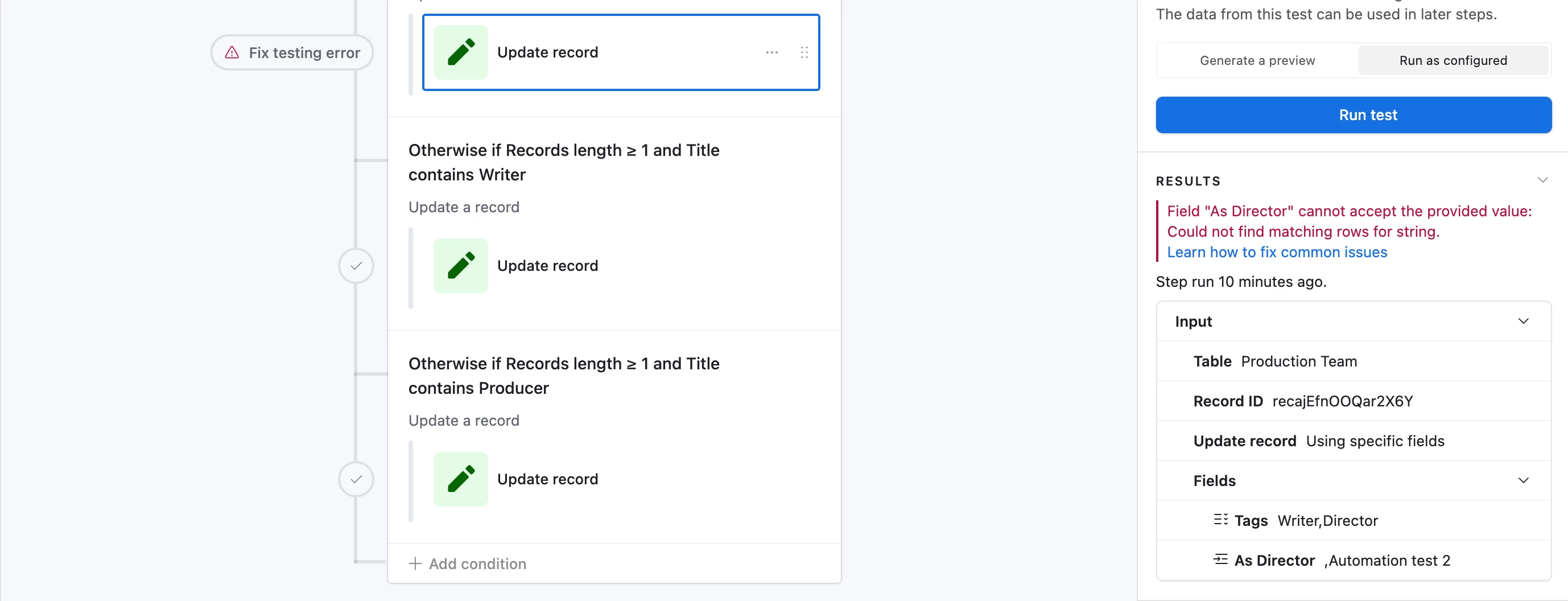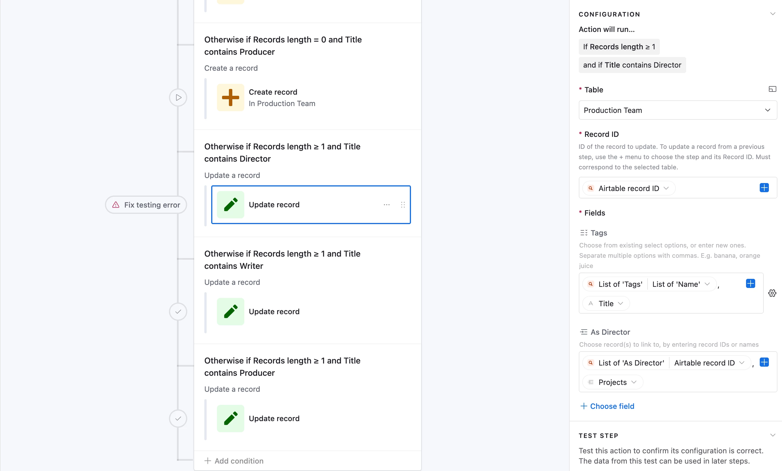Then, finally, any record that had to be newly added to the Master Contact List would also be added to the Production Team linked field on the Project table.