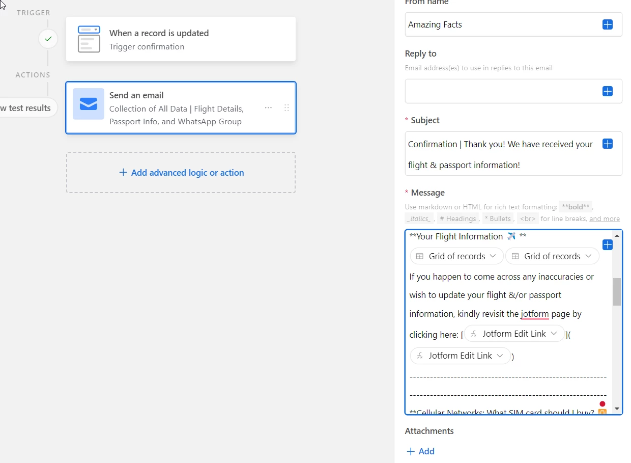 I'm having some trouble with an "Airtable > Send Email" automation, specifically in displaying the right time in the dynamic fields populated via the email. I'm using Airtable's brand version of the software and I'm using the new grid of records function (see photos attached). Basically, what I want to be displayed in the data is what is actually in the view (however, the time displayed in the email is about 5 hours off, contrary to the data that is in the view). My guess is because, this is a time zone thing but I don't know how to fix this in the "grid of records" function being used.