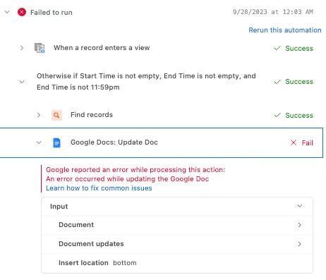 I run the backend of a small newspaper, and one thing we do is make a list of "happenings" that we publish each month. I had set up a back-end system via Airtable collection form, and the listings were then compiled into a Google doc via automations, and it was working great until this month when suddenly basically all my automations were failing - suspiciously only ones that involve dates like one-day and multi-day events.