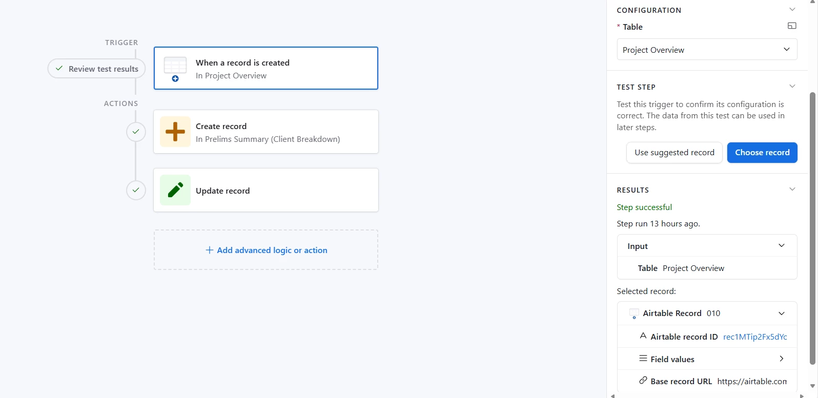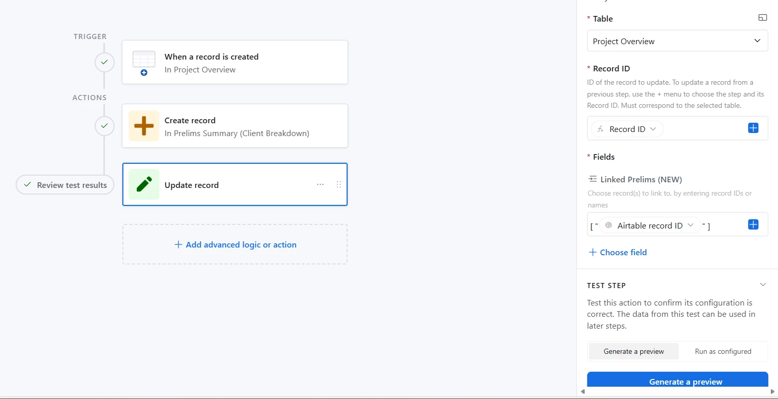 3️⃣ Updates the original Project Overview record to link back to that new record