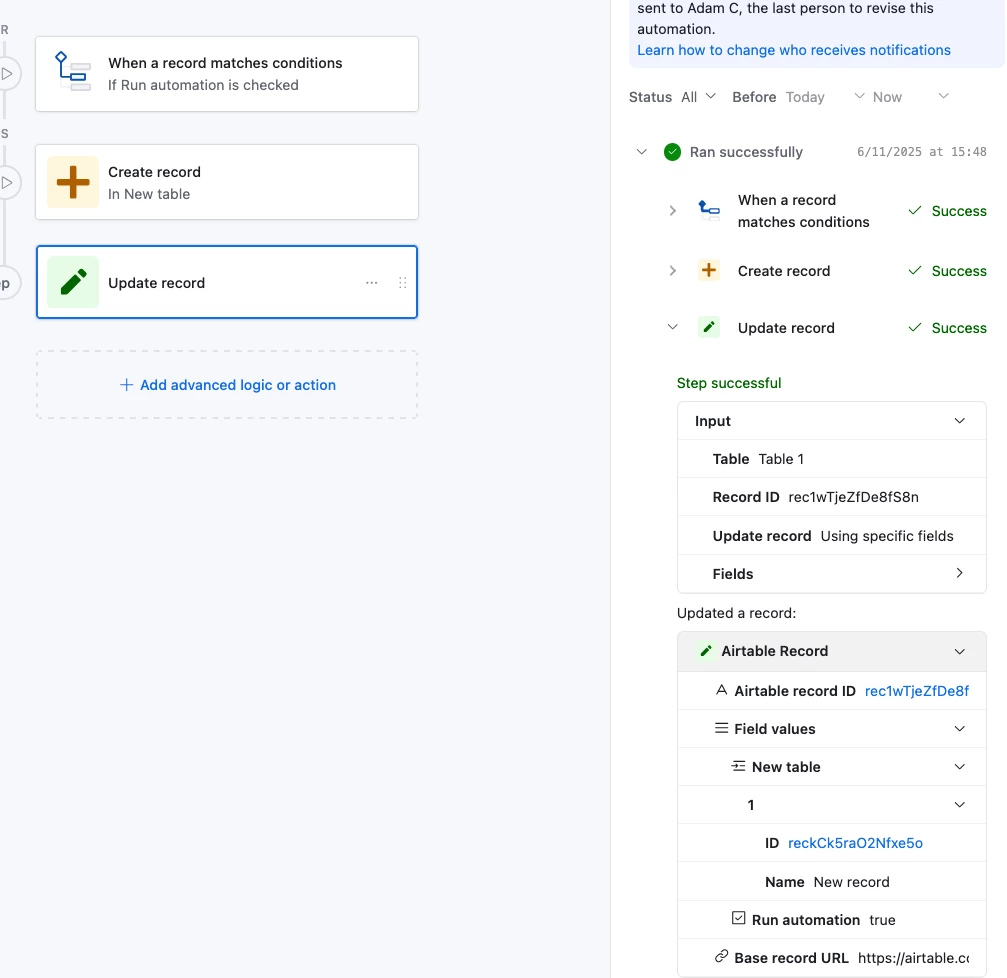 ["rechvSfKKM3dFqypl"] ✅ (green — works) "rechvSfKKM3dFqypl" ❌ (red — literal string)