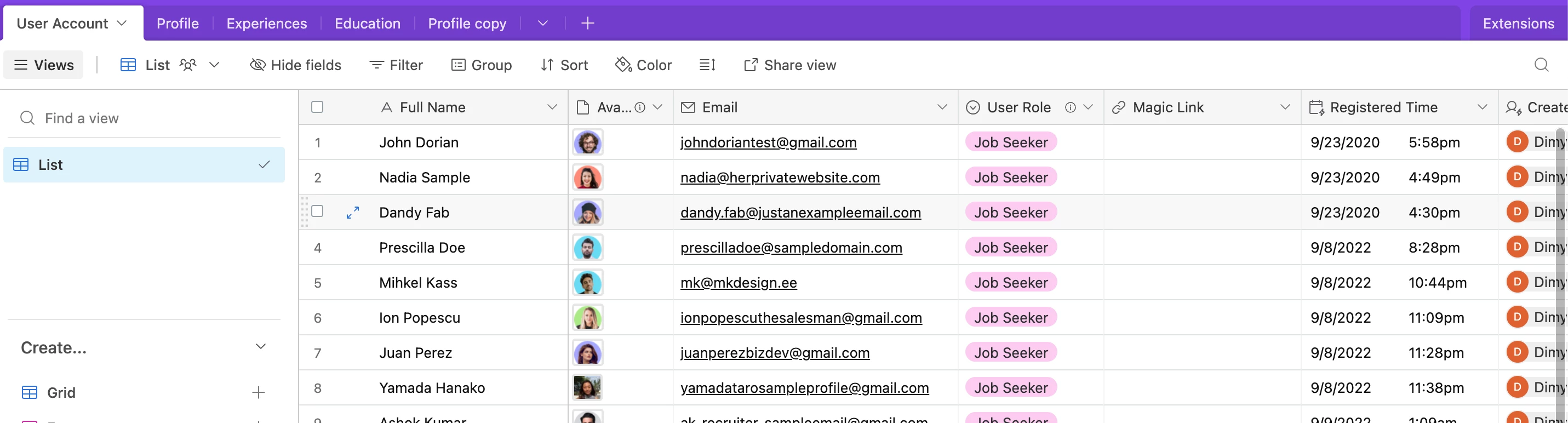 how to pull data from column (User Role) with value "Job Seeker" only. which is in the table [User Account]