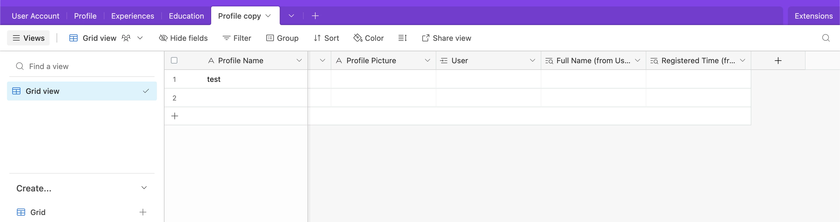 and I want the Primary Column [Profile] table to be taken from the Full Name in the [User Account] table