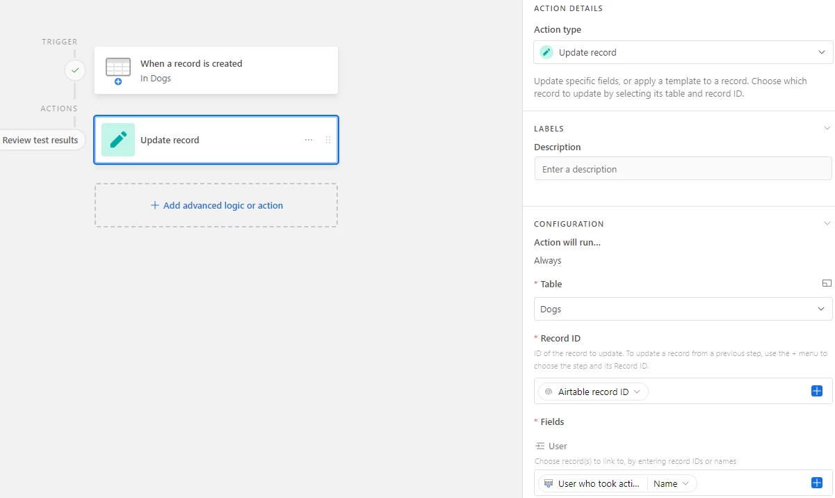 Airtable has a built in CreatedBy field. It sounds like this is what you are trying todo. Then when an record is update happens you have LastModifiedBy