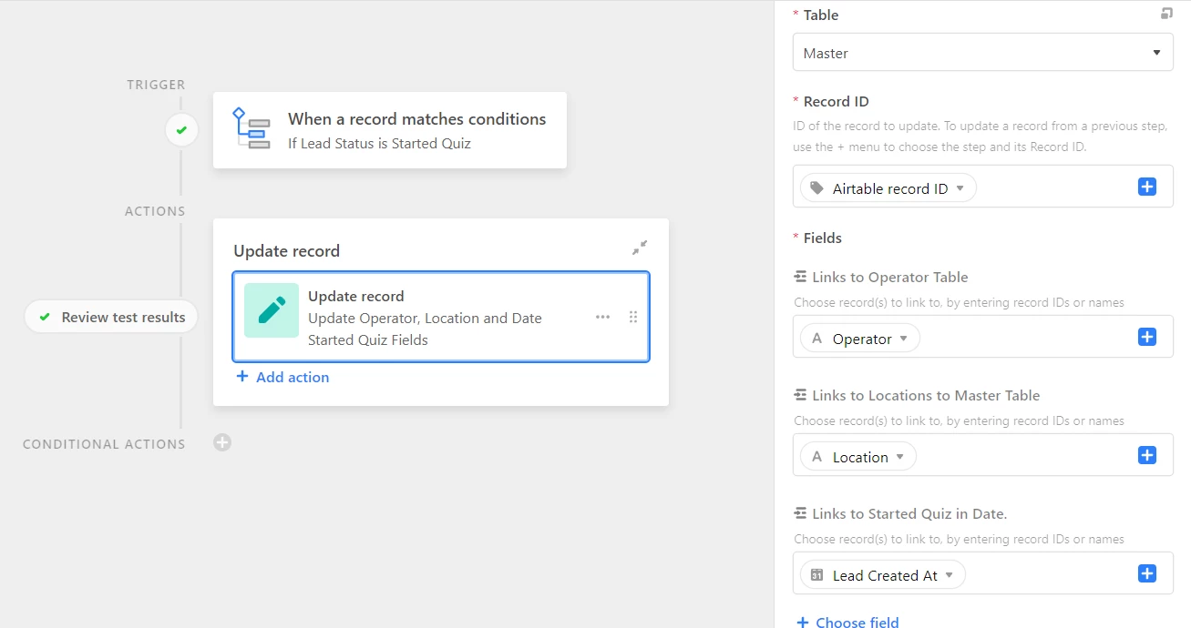 I have created an automation with a 'when condition met' trigger and then update the record.