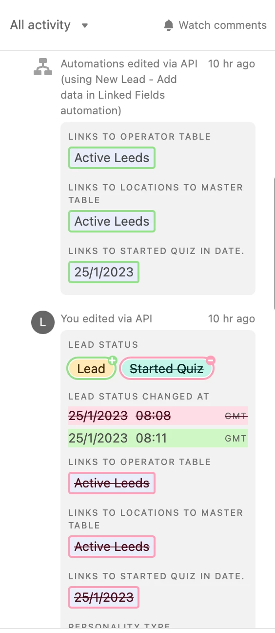 I have a few as the lead's details change. So when they appear in the flow i want to fill some new columns, then when they become a lead, i fill an extra column and then when they're a qualified lead - another column is filled using the automations.