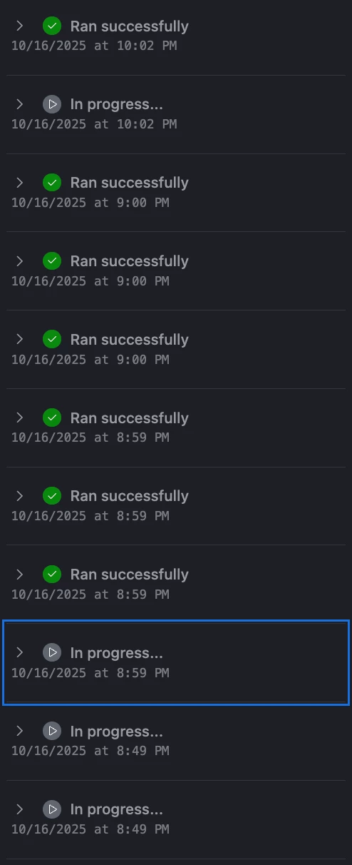 - There isn’t a clear cut off when the automations started getting stuck. See screenshot below: several still pending from before 9pm on Oct 16, followed by successful runs, then everything after 10.15pm is pending.