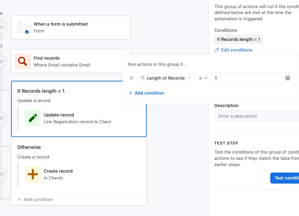 (Note that your automation will not work if it finds zero records or more than one record. If it finds more than one record, you would need to setup a repeating action to “loop through” the records that were found in your “Find Records” action, and then you can update each found record.)