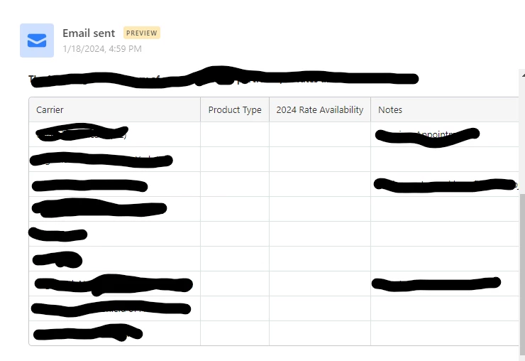 I have a pretty basic automation that grabs a few records in a grid and sends them in an email. The issue is that it seems that in between finding the record and sending the email two different fields go blank. I've attached screenshot examples. The first is the result of "Find Records" and the second is the Grid emdedded in the email (with information censored). Note how in the second image, Product Type and 2024 Rate Availability are both empty.