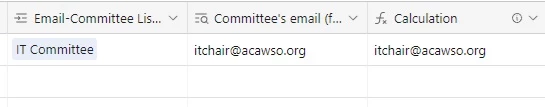 CONCATENATE({Committee's email (from Email-Committee List 2)}, "") but when putting --Calculation-- field in the --to-- field in the automation it comes back with the message that "The "To" input is empty" and I don't know what I'm doing wrong there.