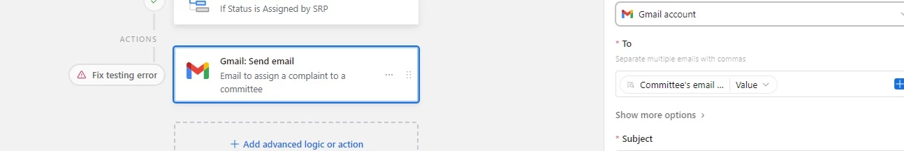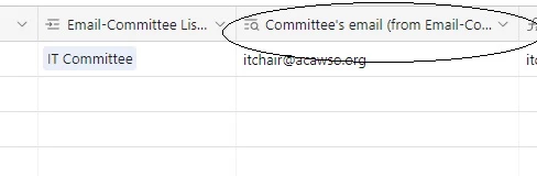 Hi. I've bumped into an issue when I want to send an automated email based on a field containing an email address. I've got two fields, one lookup that shows me the email address based on a selection from Email-Committee List. Help articles suggest using this formula -->>
