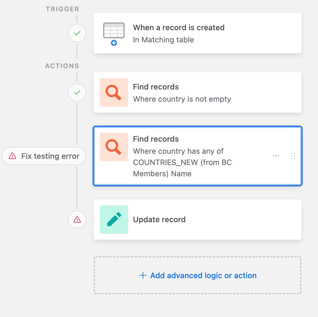 Once the record created in the matching Table (here is the automation I try to create) I want to add Partners records (Link to DB Partners) to the record created for the client.