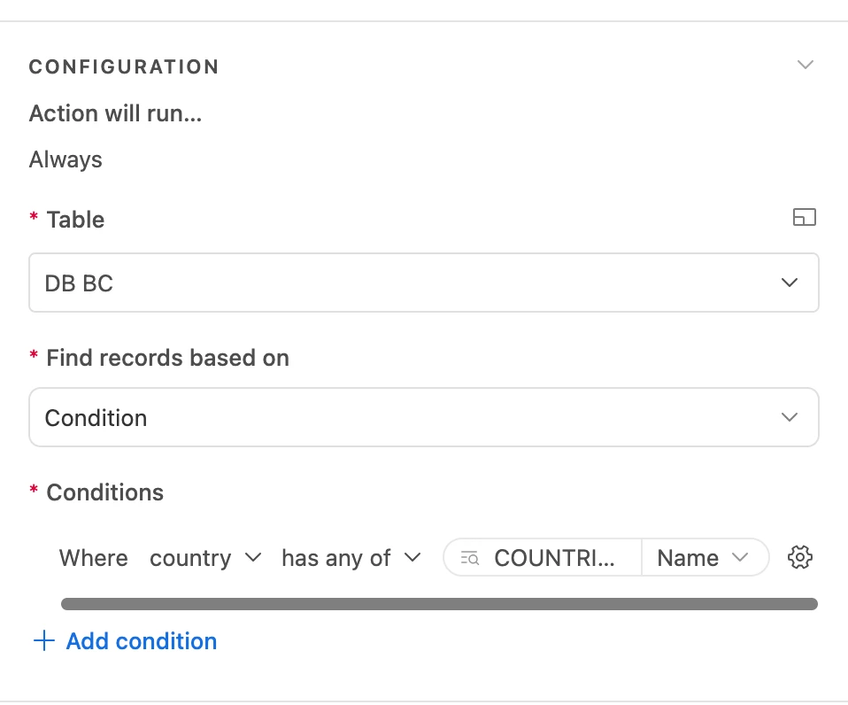 I want to set up an automation to match records by using two records, geographical area and interests.