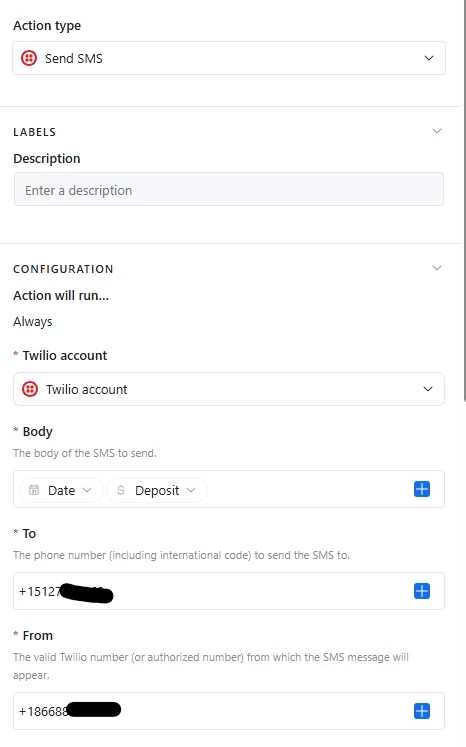 I ended up creating a trial Twilio account. Set it all up. I’m at a point where I’m testing it. AirTable thinks the test is working, but I never get the text. I am pretty sure the Twilio account is registered properly.