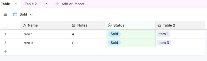 I have a table where I’m recording goods sold off from our inventory with a checkbox and status change. When I change the dropdown to `Sold` or `Donated` - I want to be able to :