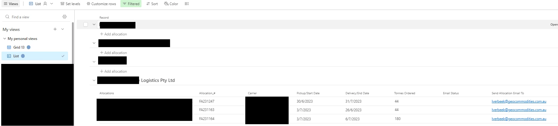 Is there any way for us to send eg. ABC Logistics one email with multiple linked Allocations in a Grid format?