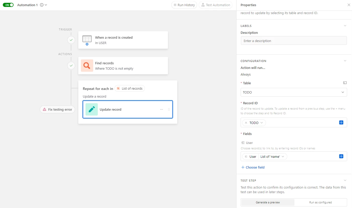 J'ai deux tables : TODO et USER pour un processus d'onboarding