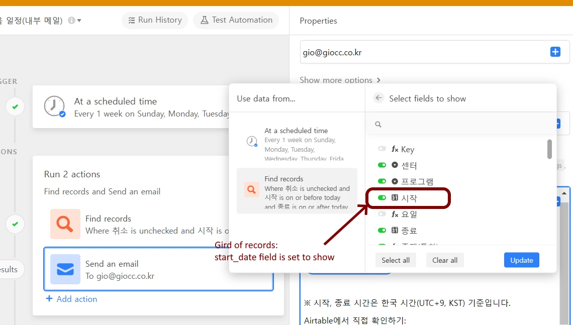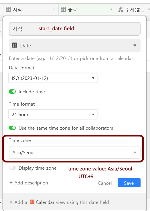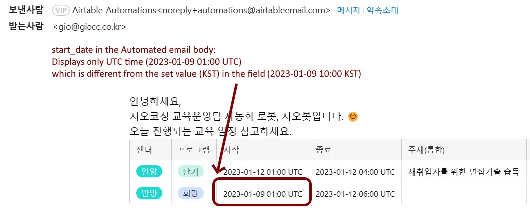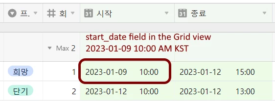 - In the Airtable field, we put this value: 2023-01-10 10:00 KST