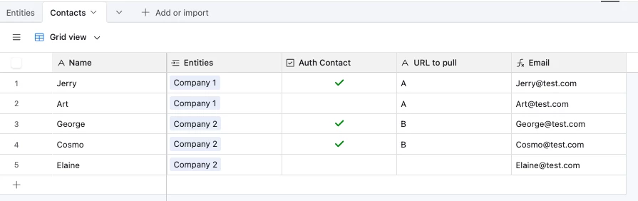 We have a list of contacts for each entity that we work with. Within this list of people, there are 1-3 people who are designated as authority contacts.