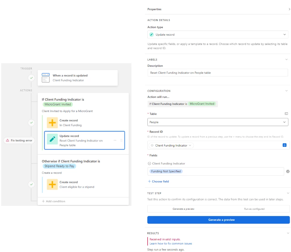 - When Client Funding Indicator field changes to "MicroGrant Invited", do two things