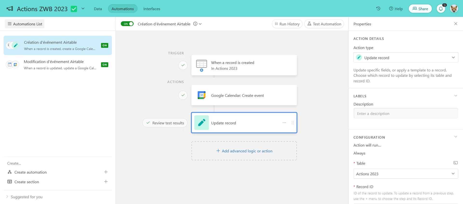 I come again to ask for your help on the automation for integrating Airtable records into a Google Calendar. This automation only works when I duplicate my event in Airtable. I attach the capture of my automation. Do you have a trick to solve this problem?