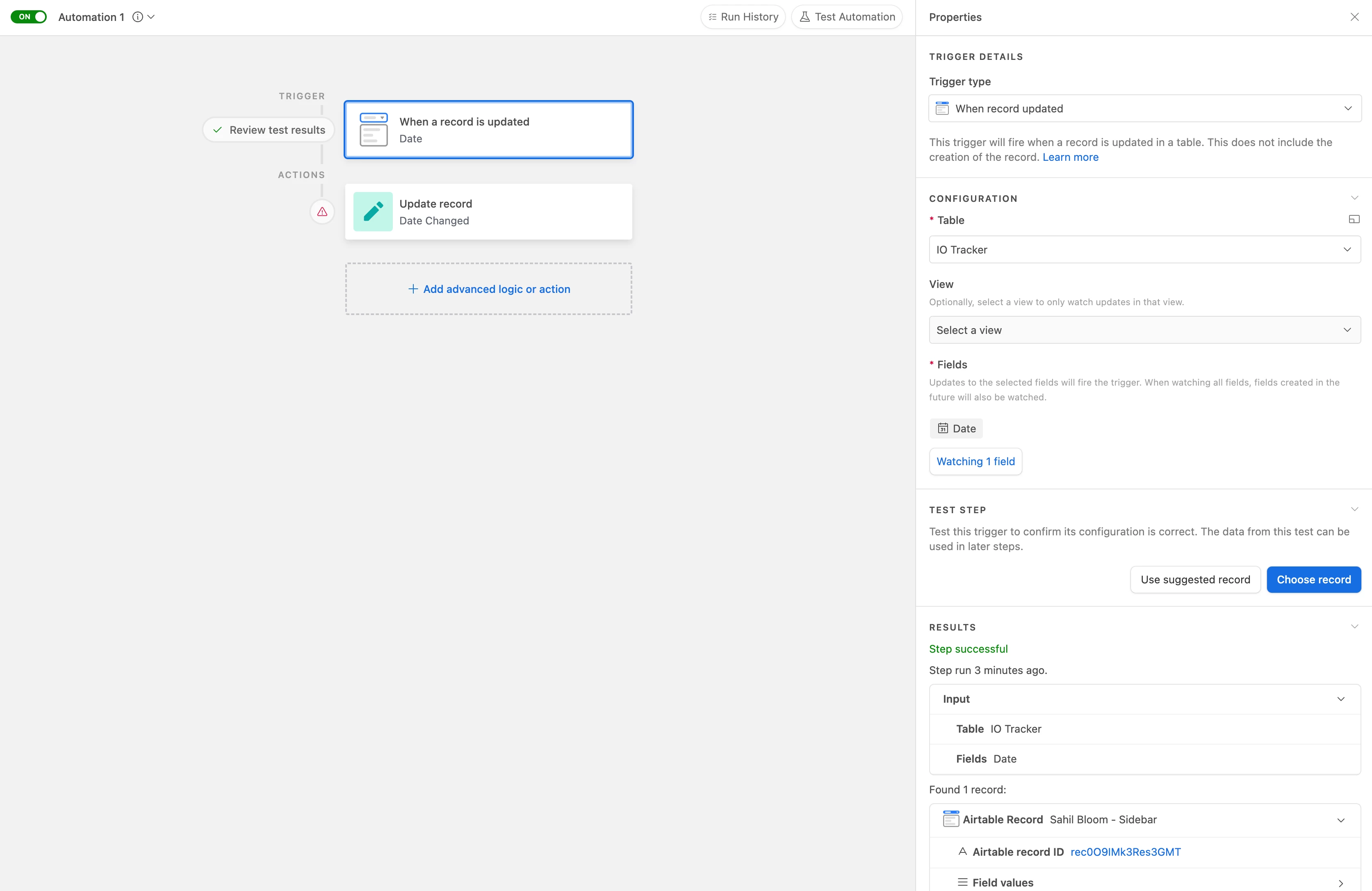I have a date value. When that date value is updated I want a single-select record to automatically update to "Date Changed"