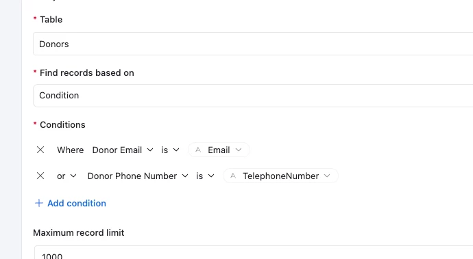 However if the new record created has empty fields for the conditions of the lookup, it returns ALL the records in the other table when it shouldn't return any records since an empty field does not equal to a non empty field.