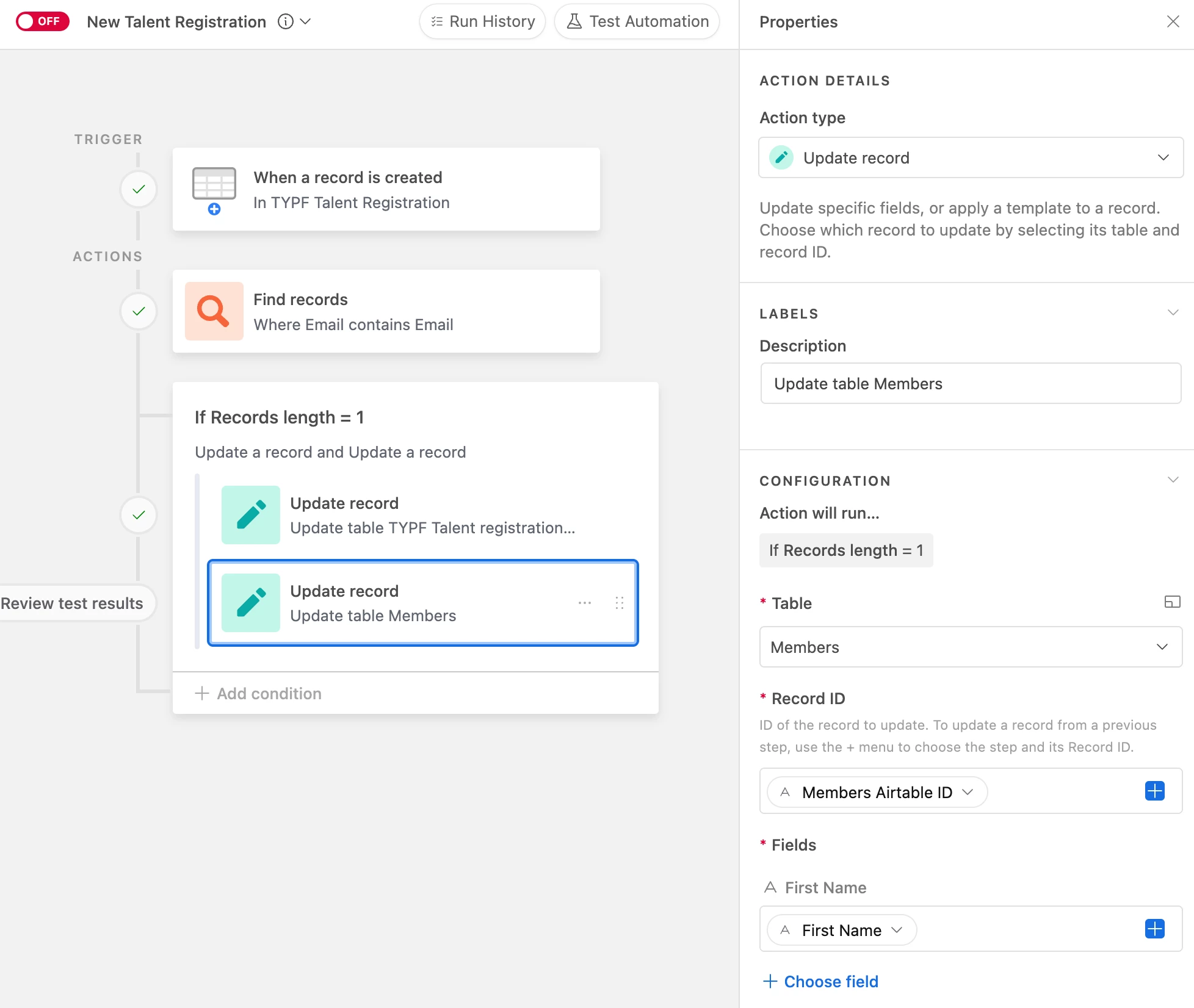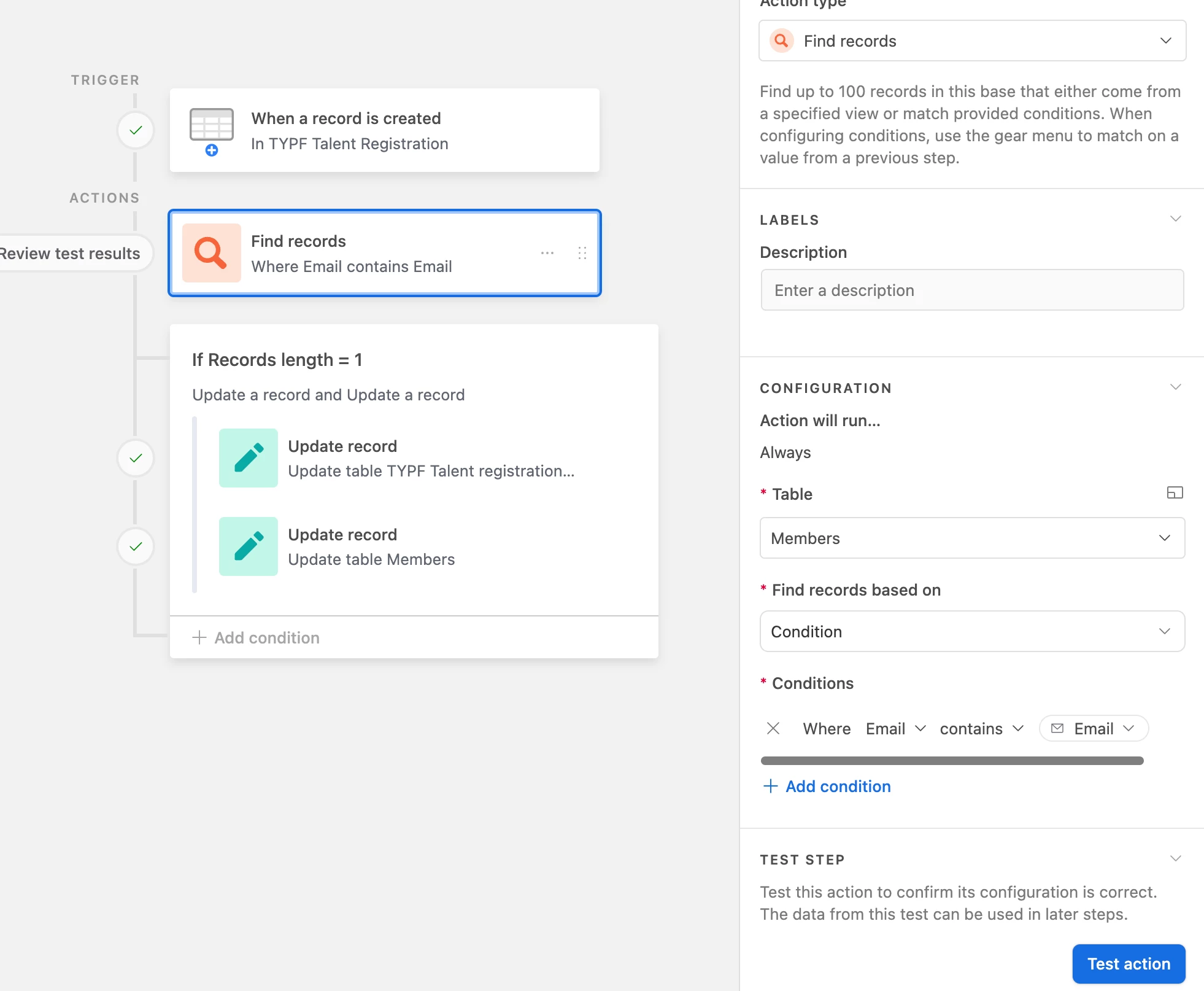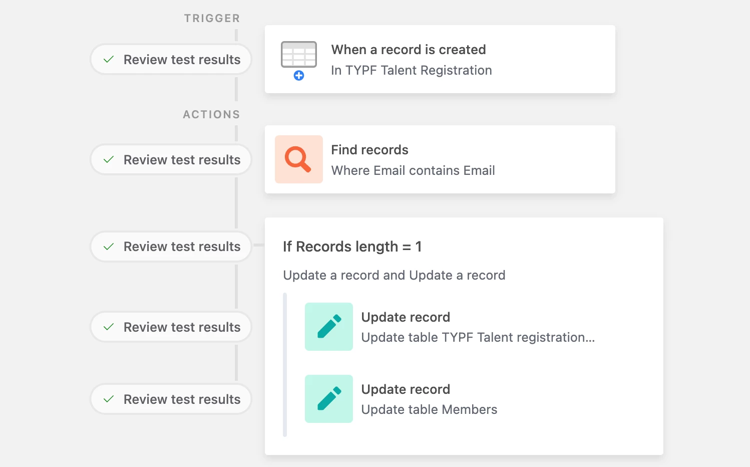 How can I have AirTable filter by email and update records accordingly? Is this achievable?