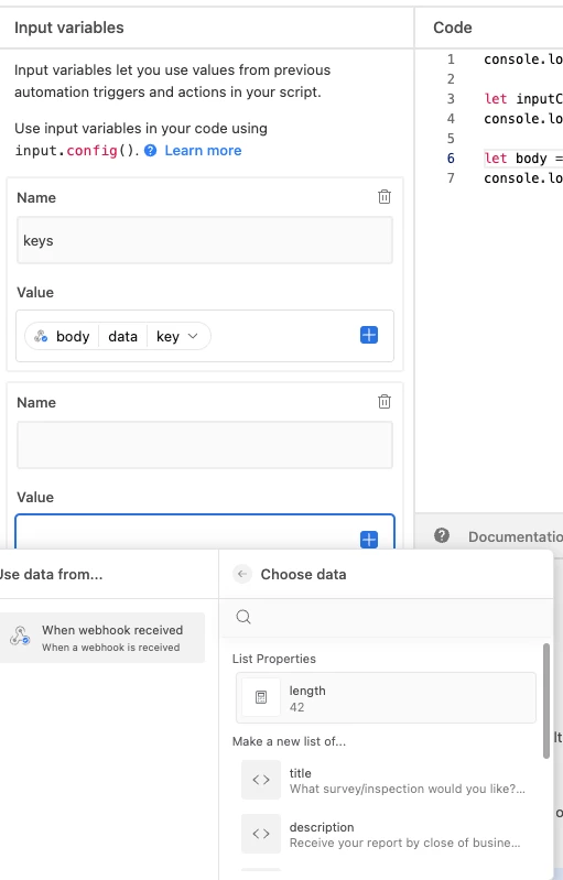 }This means that the when trying to use the data in a script using inputConfig it wants to create a list of values e.g a list of all "custom_keys" or all "types"... not helpful. Moreover it can't actually create a list of the values for the key "value" as it says