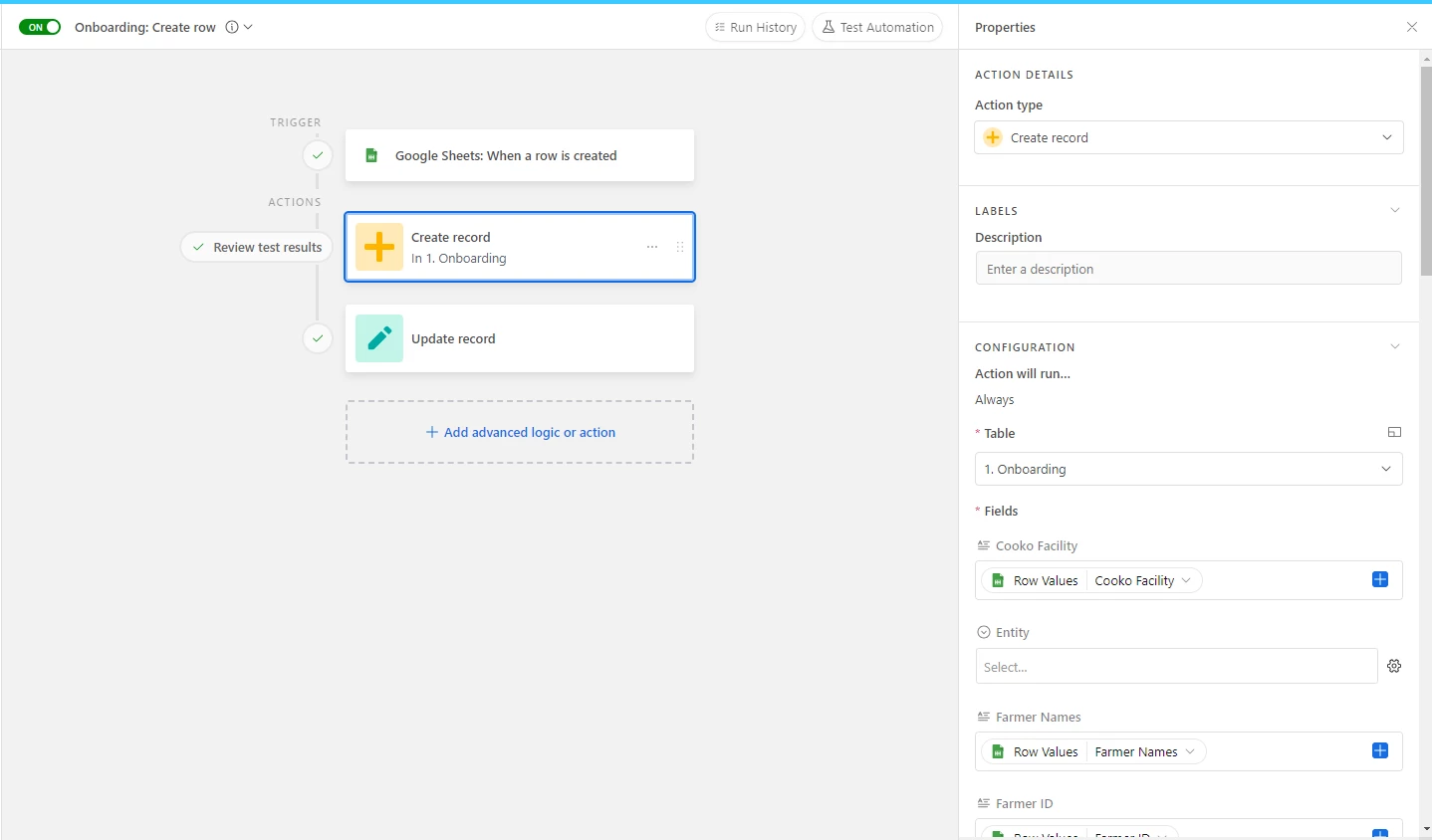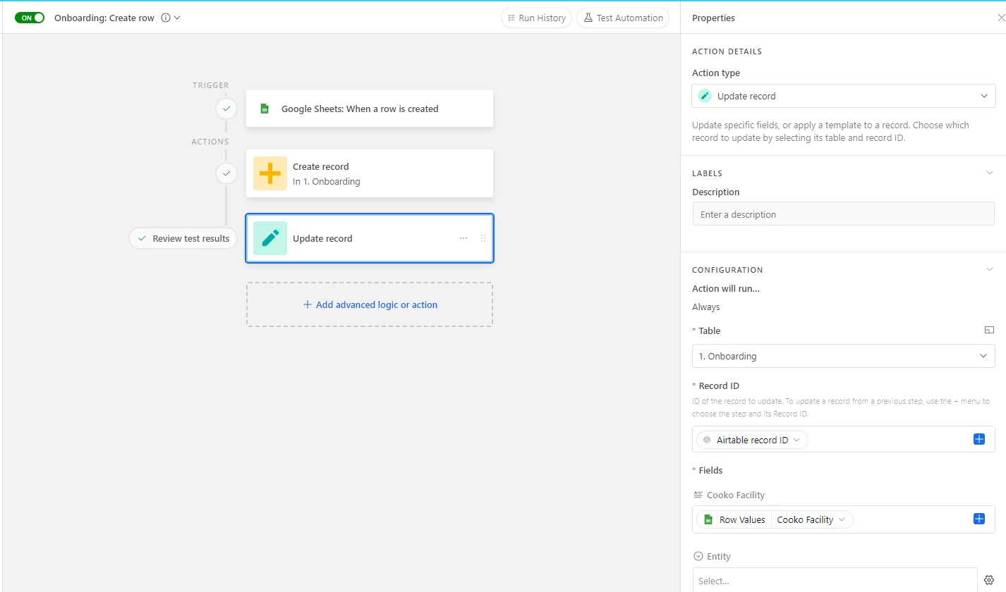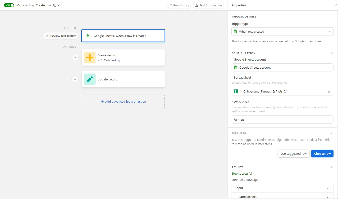I need help getting my new records in Google Sheets to show in Airtable. I created an automation as follows