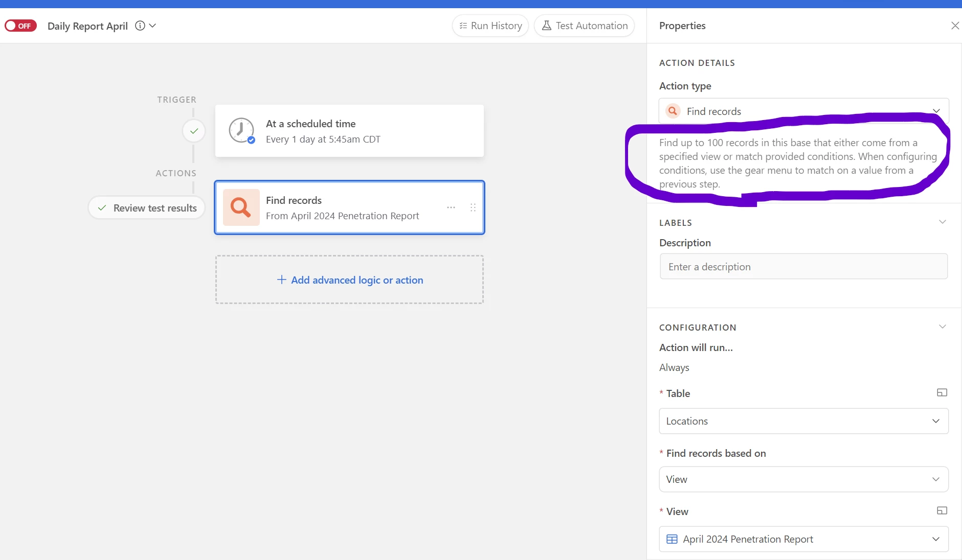 The description still lists the limit as 100 records, it just stops at 10. The view in question has 52 records in it. I've even went so far as to test this on older automations which we've since stopped using (afraid to touch any currently running automations for fear they might stop working properly).