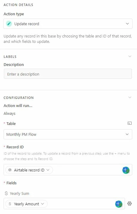 The Goal: When I update a single field inside a record I want the automation to update a corresponding field in another record.